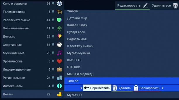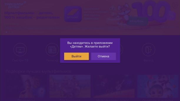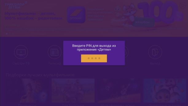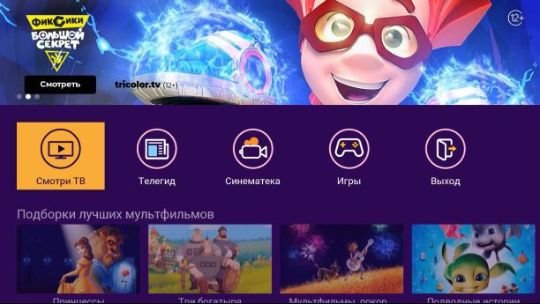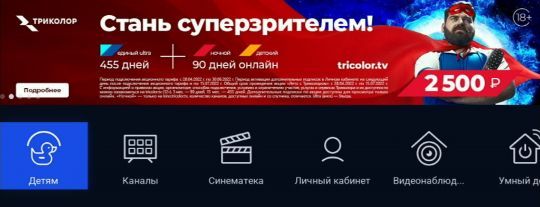 Управление в приложении доступно и с обычного пульта, но специальный детский позволяет юным зрителям безопасно пользоваться интерфейсом без помощи взрослых. Приложение «Детям» запускается при нажатии на любую кнопку детского пульта (кроме кнопки вкл/выкл). Подробнее про детский пульт вам расскажет консультант в Фирменном салоне Триколора.